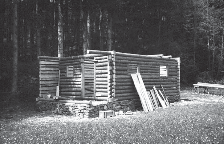Rozestavěný zálesácký srub Ladislava Brožka — Billa Brochese. foto: Academia