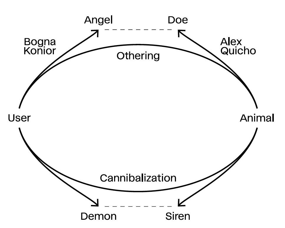 Základní limit je ovšem v tom, nakolik jsme schopni a ochotni poddat se online aréně. Alex Quicho pracuje s konceptem taktické pasivity, která přijímá některá pravidla (agresivního online prostředí), ale zároveň si zachovává vlastní agency a smysl pro individuaci.