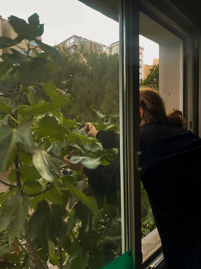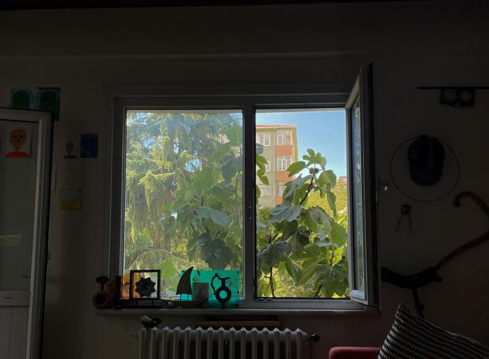 V Turecku možná ani není potřeba předvádět vysoké zahradnické umění, jako tomu je na lanžhotských zahrádkách, jen aby člověk sklidil pár fíků. Myslím, že istanbulským fíkovníkům se roste stejně jednoduše jako v Česku plevelu nebo moruši. U cesty, bez cizího přičinění, aniž by jim někdo přikládal dobré vlastnosti. Nejsem v pozici, abych porovnávala hodnotu jednotlivých stromů, když pravidelně neodolávám a trhám ovoce z těch, ze kterých můžu, a lezu na ty, které mi to dovolí. Žádný z českých stromů, který bych jen vzdáleně mohla považovat za svůj, ovšem není jako můj nový fíkovník. Jeho větve nikdo pravidelně každé druhé jaro nestříhá, jeho klikatý kmen vyrůstá z jediné otevřené půdy za domem, velké listy má zaprášené od štěrku z parkoviště. Růžové provázky přivrtané ke zdi drží jeho větve, aby dosáhl do okna našeho obýváku a nikam výš. Neroste do dalších pater, a tak je jen náš. Postupně vrůstá do našeho bytu, mezi polštáře na gauči, mezi volant a lední brusle zavěšené na zdi.